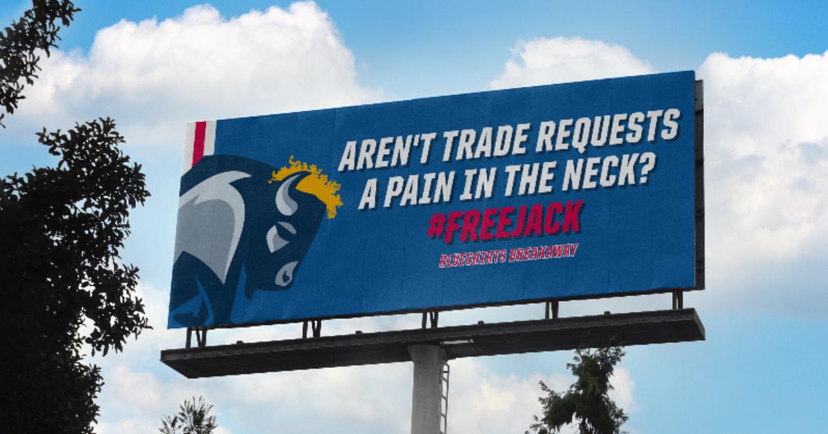 Авторы подкаста о «Рейнджерс» призвали «Баффало» отпустить из команды форварда Джека Айкела, разместив рекламный щит рядом с ареной «Баффало».