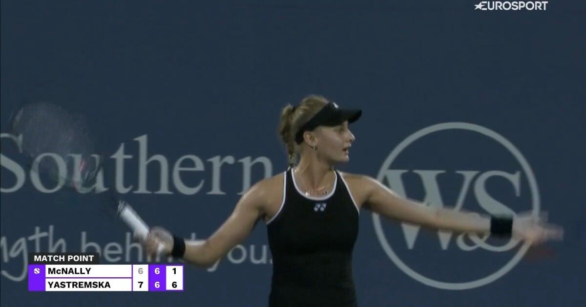 По ходу матча трибуны активно поддерживали 19-летнюю Макнелли – которая родилась в Цинциннати. После матчбола Ястремская начала просить, чтобы они еще больше пошумели.