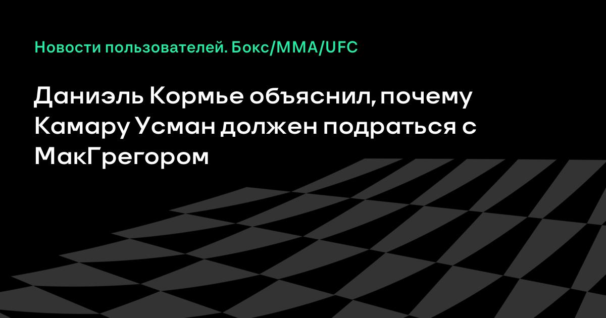 Легенда ММА Даниэль Кормье считает, что действующий чемпион UFC в полусреднем весе Камару Усман обязан рассмотреть возможность провести бой со скандальным ирландцем Конором МакГрегором, который на днях пообещал фанатам завоевать пояс в 170-фунтах.
