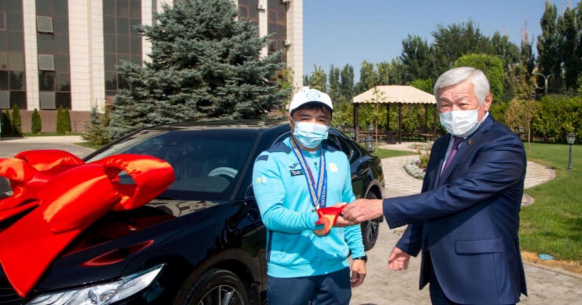 Глава региона высоко оценил достижения спортсмена и вручил ему ключи от нового автомобиля Toyota Camry, пожелав новых побед и достижений. Тренеру же Галымжану Жылгелдиеву был вручен сертификат на миллион тенге.