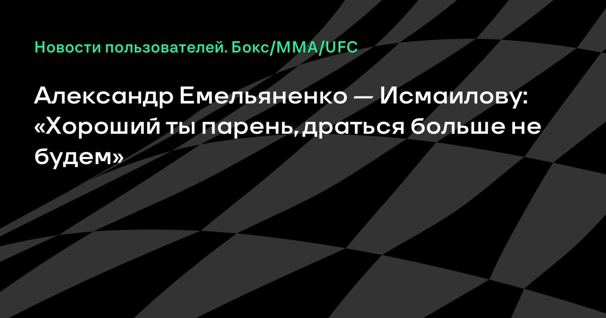Александр Емельяненко — Исмаилову: «Хороший ты парень, драться больше не будем»