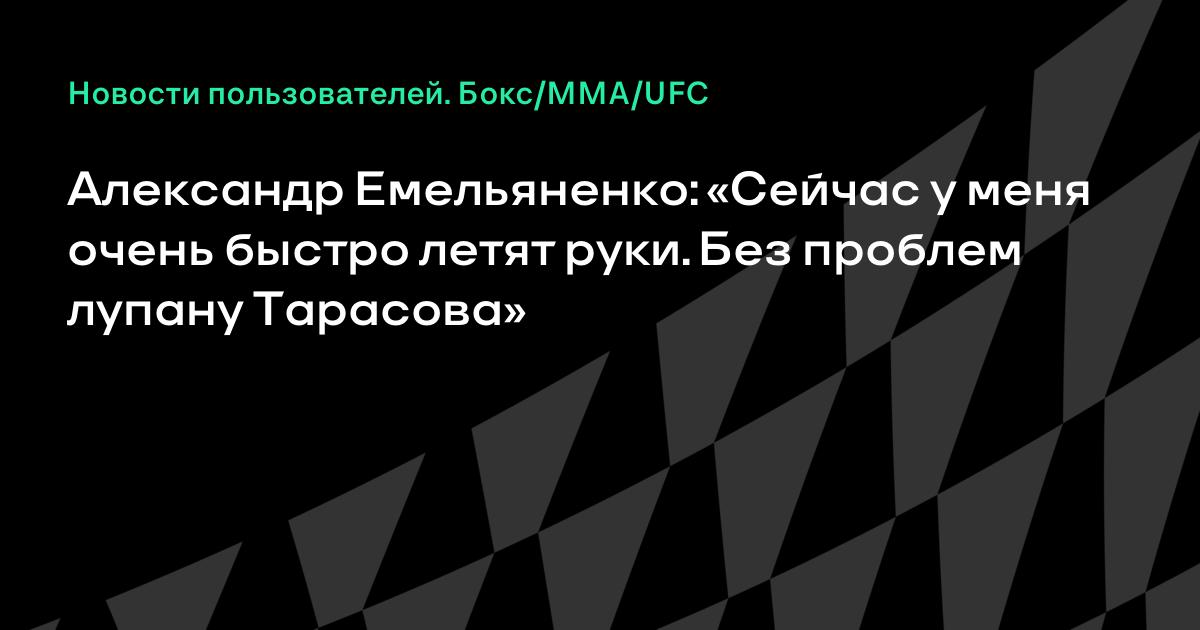 Александр Емельяненко: «Сейчас у меня очень быстро летят руки. Без проблем лупану Тарасова»