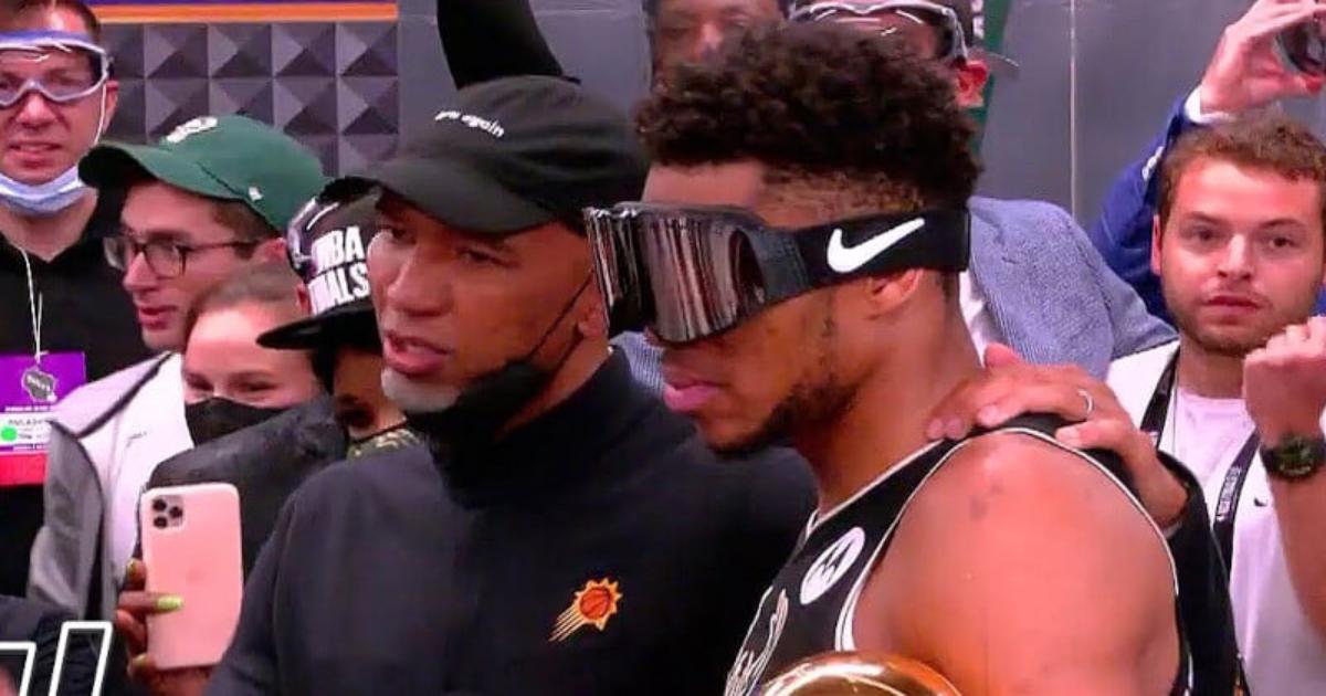 Очень трогательный момент из чемпионской раздевалки «Милуоки» – тренер «Финикса» пришел поздравить и поблагодарить соперника