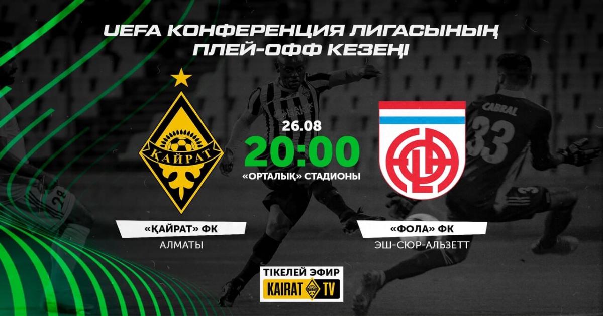 Ответный матч раунда плей-офф Лиги конференций между «Кайратом» и люксембургской «Фолой» пройдет при пустых трибунах. Об этом сообщила пресс-служба алматинского клуба.