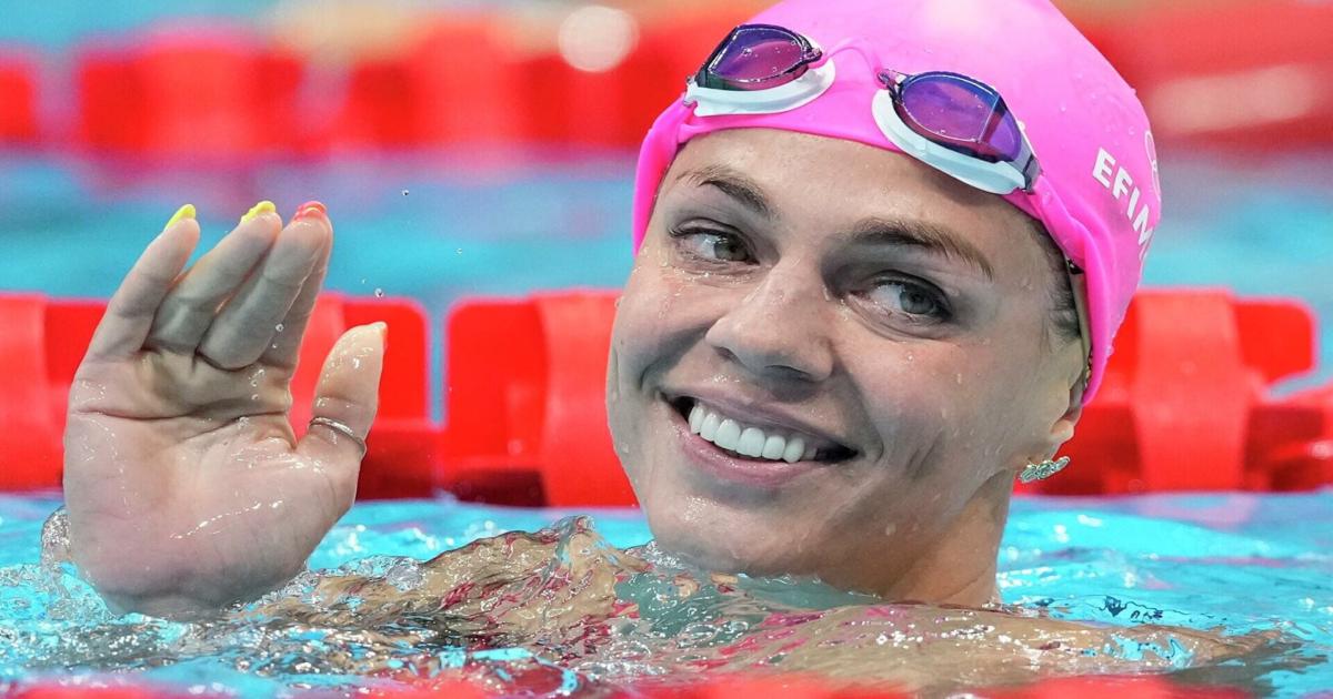 Защитник «Тампы» Михаил Сергачев и 6-кратная чемпионка мира по плаванию Юлия Ефимова посоревновались в заплыве.