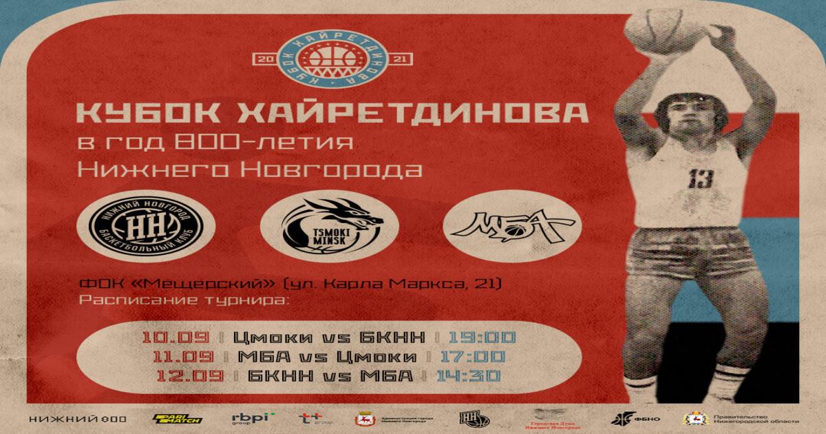 Кубок Хайретдинова пройдет с 10 по 12 сентября. Первыми гостями нового турнира станут две команды – участник Единой лиги ВТБ «Цмоки-Минск» (Беларусь) и коллектив из Суперлиги-1 московский МБА.