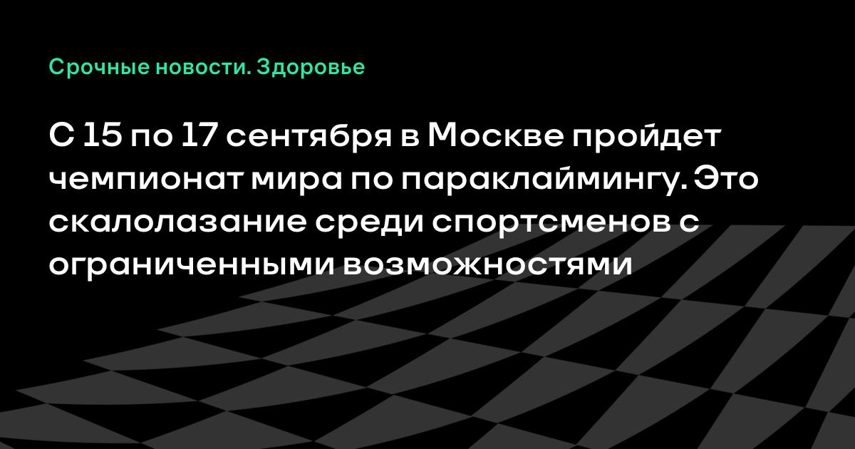 С 15 по 17 сентября в Москве пройдет чемпионат мира по параклаймингу – скалолазанию среди спортсменов с ограниченными возможностями здоровья. Его участниками станут более 120 сильнейших спортсменов из 20 стран.
