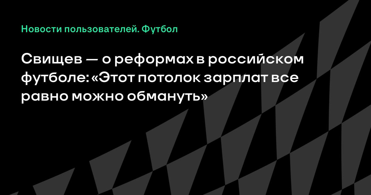 Свищев — о реформах в российском футболе: «Этот потолок зарплат все равно можно обмануть»