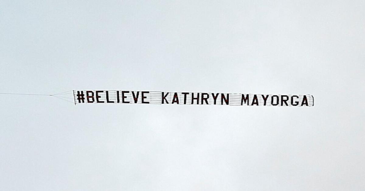 На баннере было написано «верьте Кэтрин Майорге». Самолет появился над полем почти сразу после начала матча.