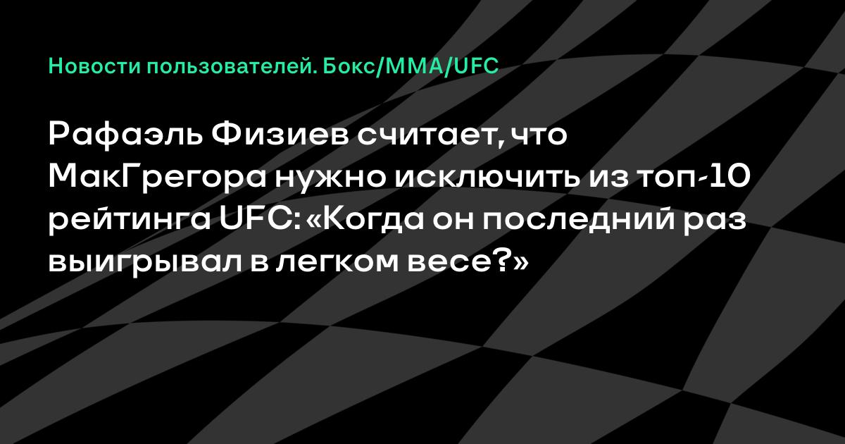 Рафаэль Физиев считает, что МакГрегора нужно исключить из топ-10 рейтинга UFC: «Когда он последний раз выигрывал в легком весе?»