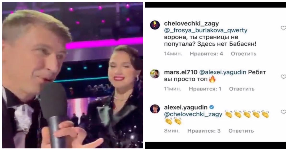В подписи к этому видео в инстаграме Ягудин попросил фанатов Евгении Медведевой покинуть его страницу. Он отметил всех участников «Ледникового периода», включая партнера Медведевой по шоу Даню Милохина, но не отметил Евгению.