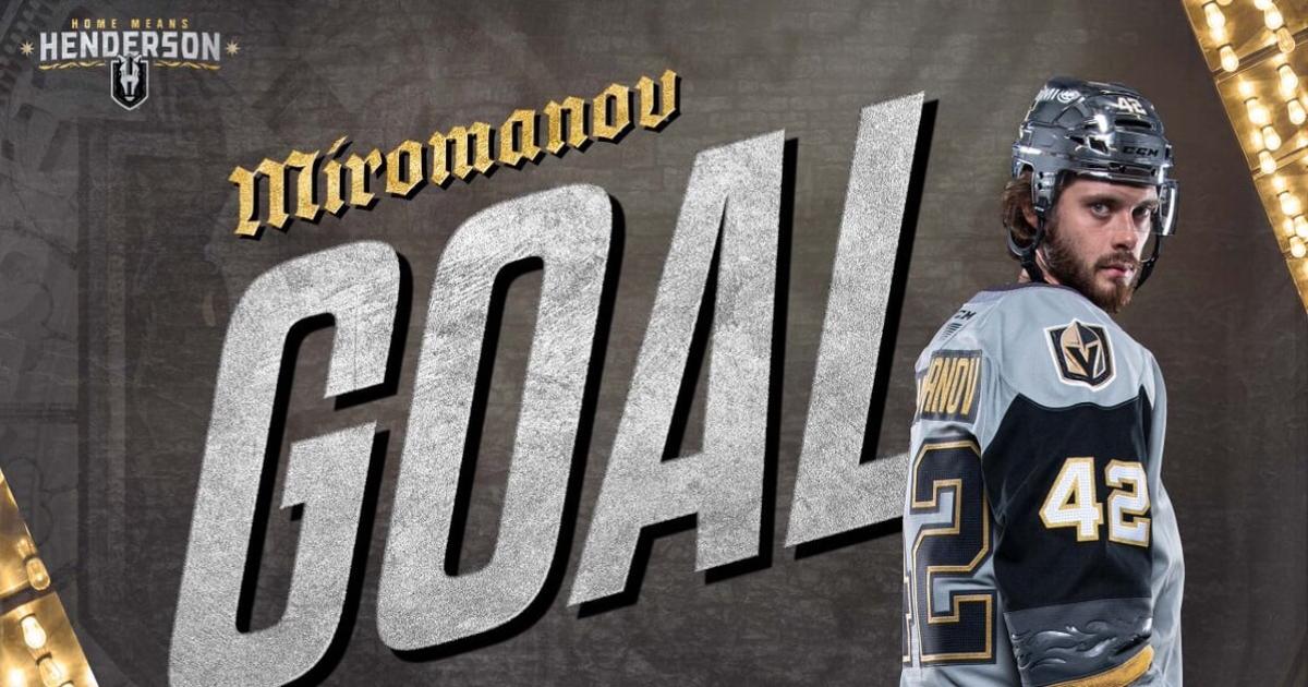 Защитник «Хендерсона» Даниил Мироманов был признан первой звездой матча регулярного чемпионата АХЛ против «Колорадо Иглс» (5:4 Б).