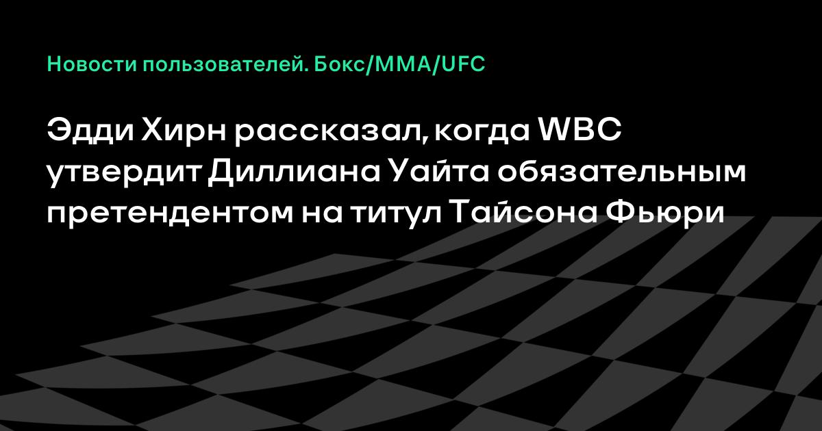Глава промоутерской компании Matchroom Boxing Эдди Хирн рассказал, когда ждет решения Всемирного боксерского совета (WBC) по бою между его подопечным Диллианом Уайтом и чемпионом по их версии в супертяжелом весе Тайсоном Фьюри.