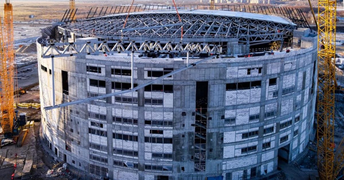 «Строители установили все 14 металлических ферм кровли основного здания арены. Монтируется профлист.