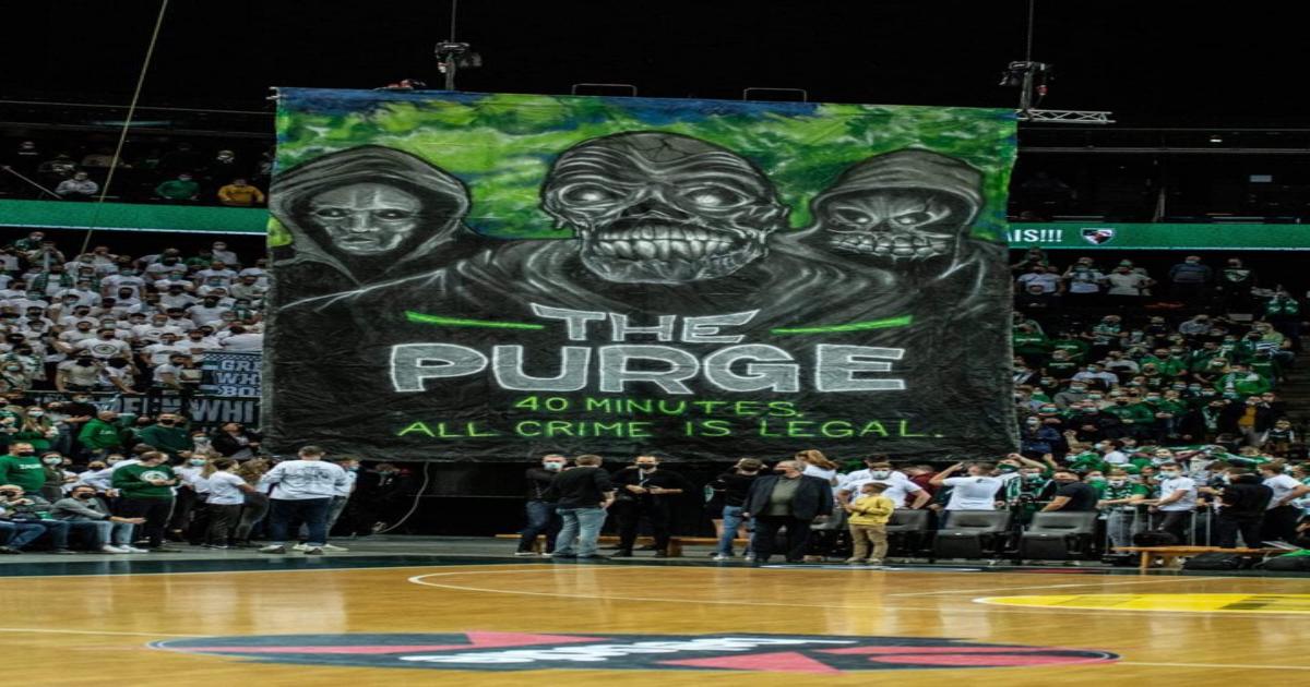Болельщики «Жальгириса» во время матча чемпионата Литвы против «Ритаса» вывесили огромный баннер, на котором написано «Судная ночь. 40 минут. Все преступления законны».
