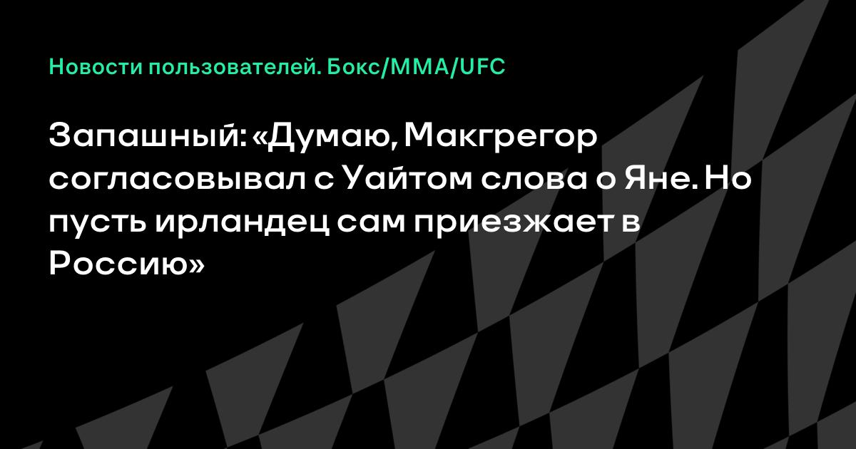 Запашный: «Думаю, Макгрегор согласовывал с Уайтом слова о Яне. Но пусть ирландец сам приезжает в Россию»