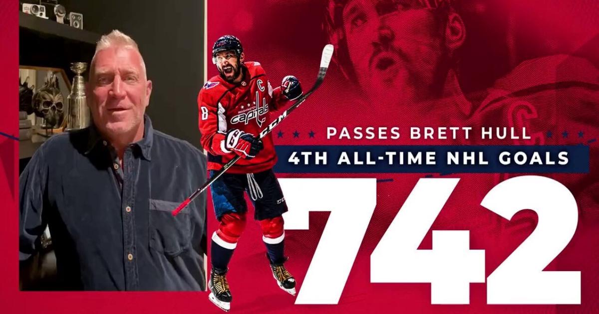 Brett Hull congratulates Alex Ovechkin (@ovi8) on reaching 4th on the all-time goals scored list❗