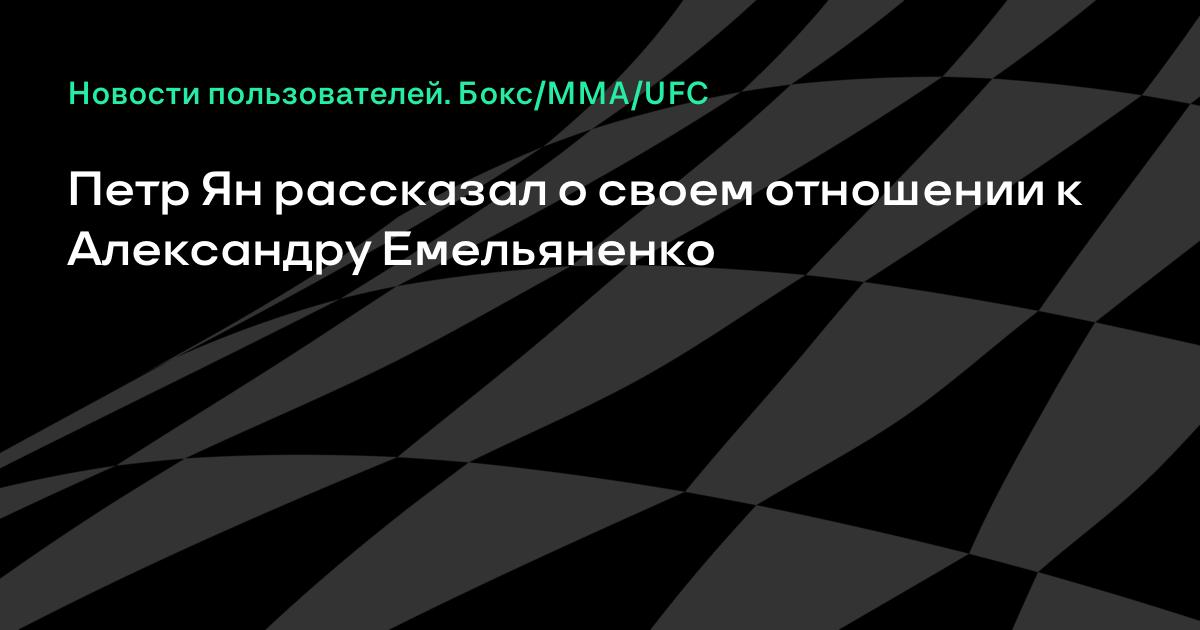 Петр Ян рассказал о своем отношении к Александру Емельяненко
