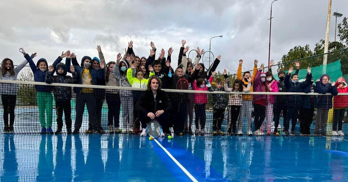 Четвертая ракетка мира Cтефанос Циципас посетил город Аркалохори на острове Крит и поиграл с детьми из местного клуба.