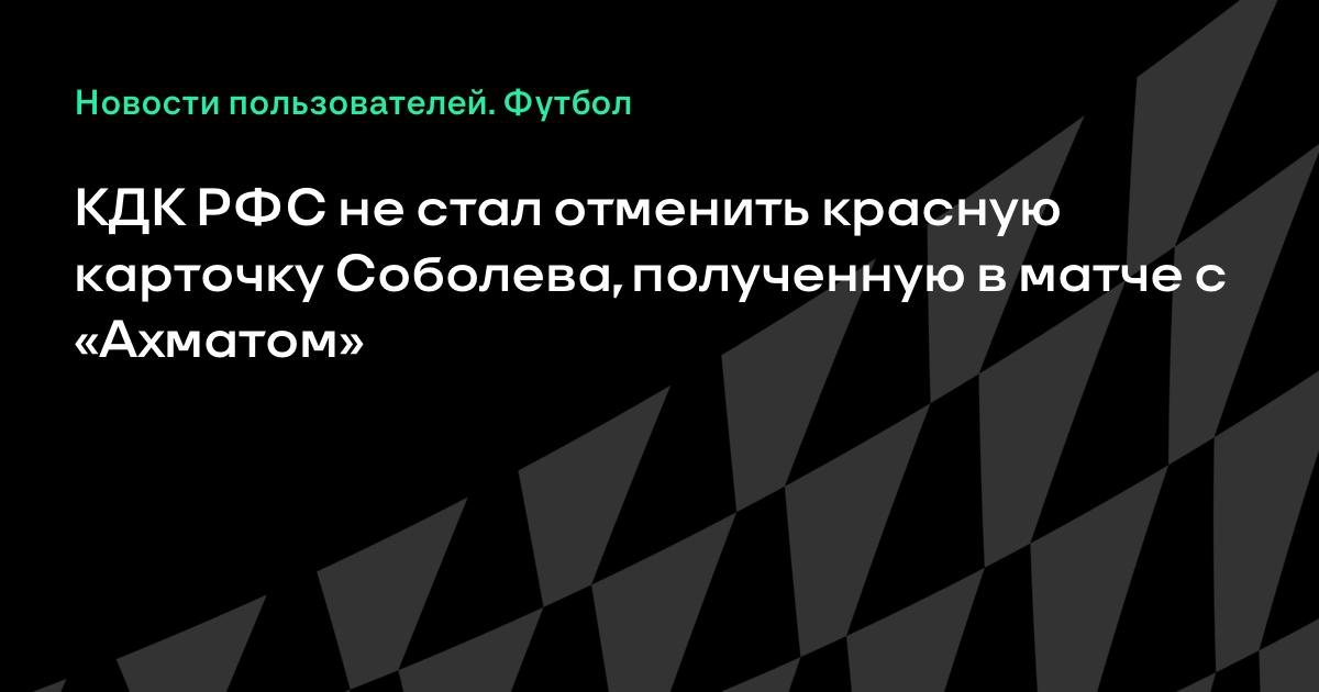 Напомним, что Соболев получил красную карточку на 33-й минуте встречи за фол против полузащитника «Ахмата» Игоря Коновалова.