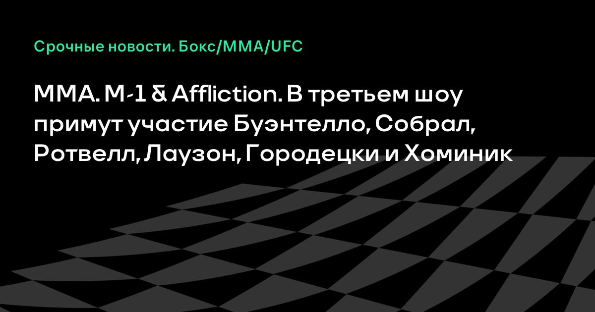 MMA. M-1 & Affliction. В третьем шоу примут участие Буэнтелло, Собрал, Ротвелл, Лаузон, Городецки и Хоминик