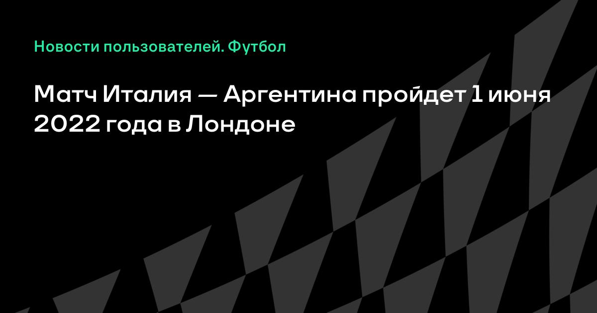 Матч чемпионов Европы и Южной Америки Италия — Аргентина пройдет 1 июня 2022 года. Игра пройдет на нейтральном поле в Лондоне, сообщает La Gazzetta dello Sport.