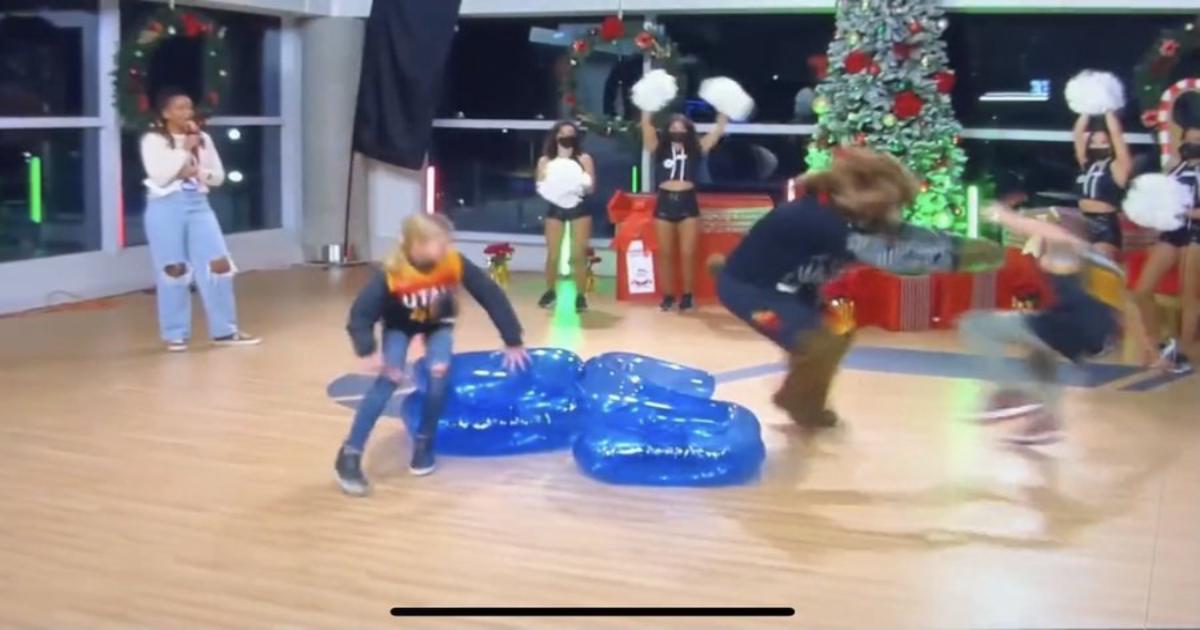 Маскот «Джаз» Bear не оставил шансов соперничавшим ему детям во время игры в «Музыкальные стулья», отталкивая их в момент, когда нужно занять одно из доступных мест.