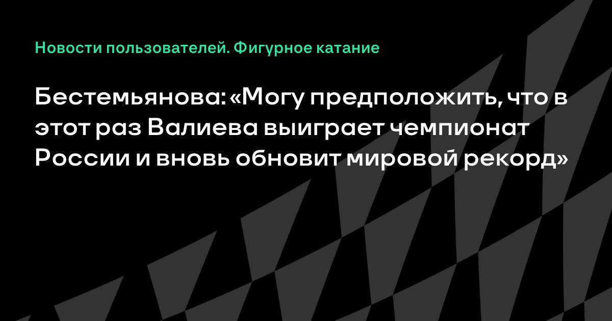 Бестемьянова: «Могу предположить, что в этот раз Валиева выиграет чемпионат России и вновь обновит мировой рекорд»