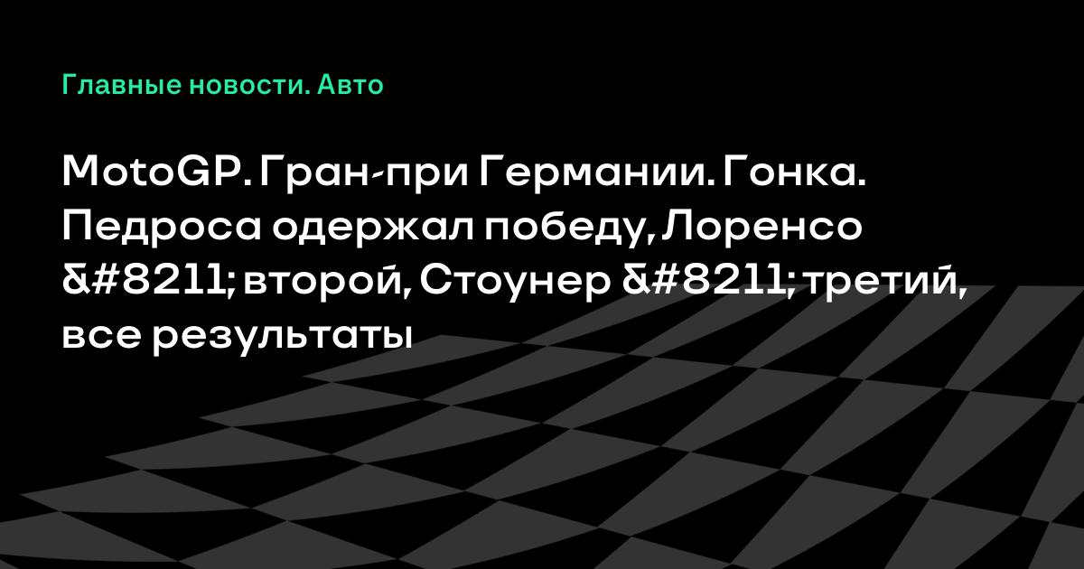 MotoGP. Гран-при Германии. Гонка. Педроса одержал победу, Лоренсо – второй, Стоунер – третий, все результаты