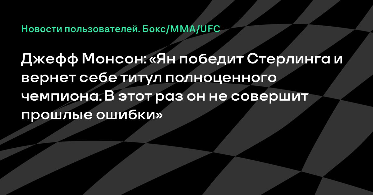 Джефф Монсон: «Ян победит Стерлинга и вернет себе титул полноценного чемпиона. В этот раз он не совершит прошлые ошибки»