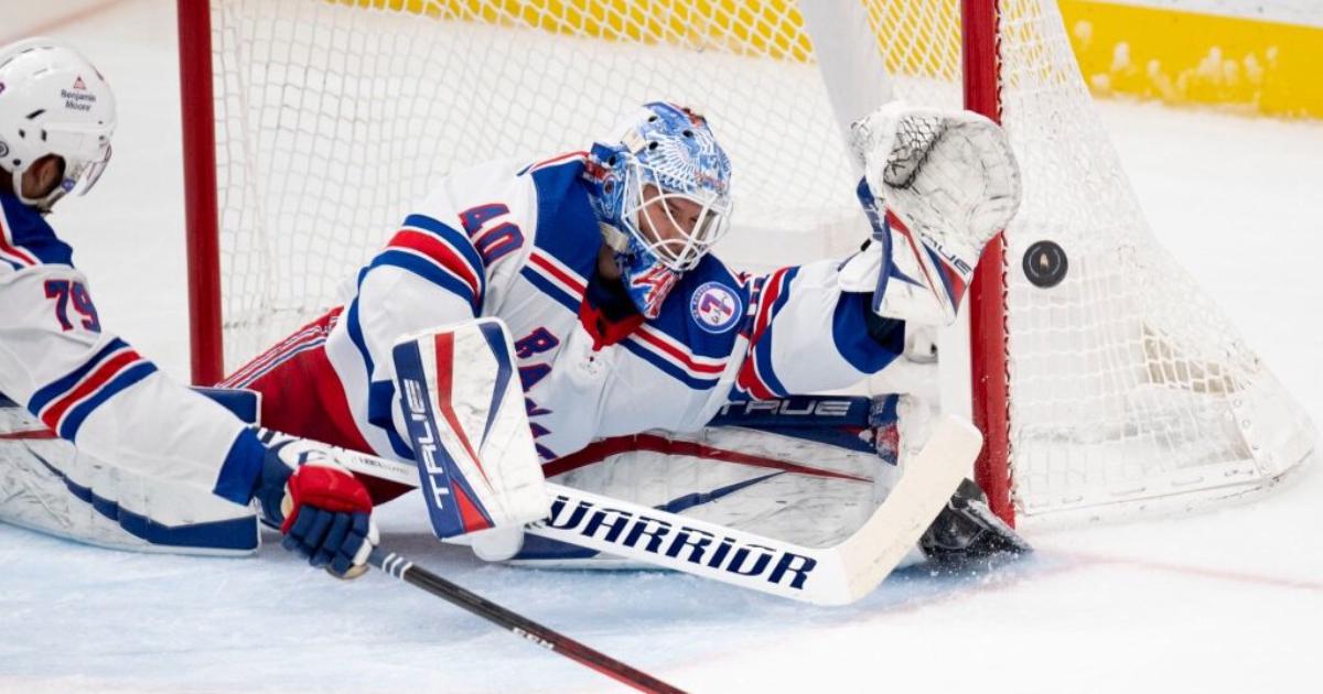 Вратарь «Рейнджерс» Александр Георгиев защищал ворота команды в матче регулярного чемпионата НХЛ с «Анахаймом» (4:1).