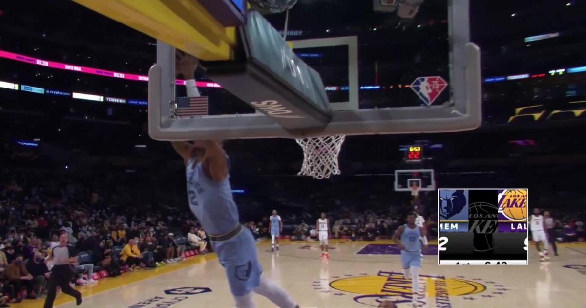 Разыгрывающий «Мемфиса» Джа Морэнт исполнил потрясающий блок-шот во время матча с «Лейкерс» (127:119).