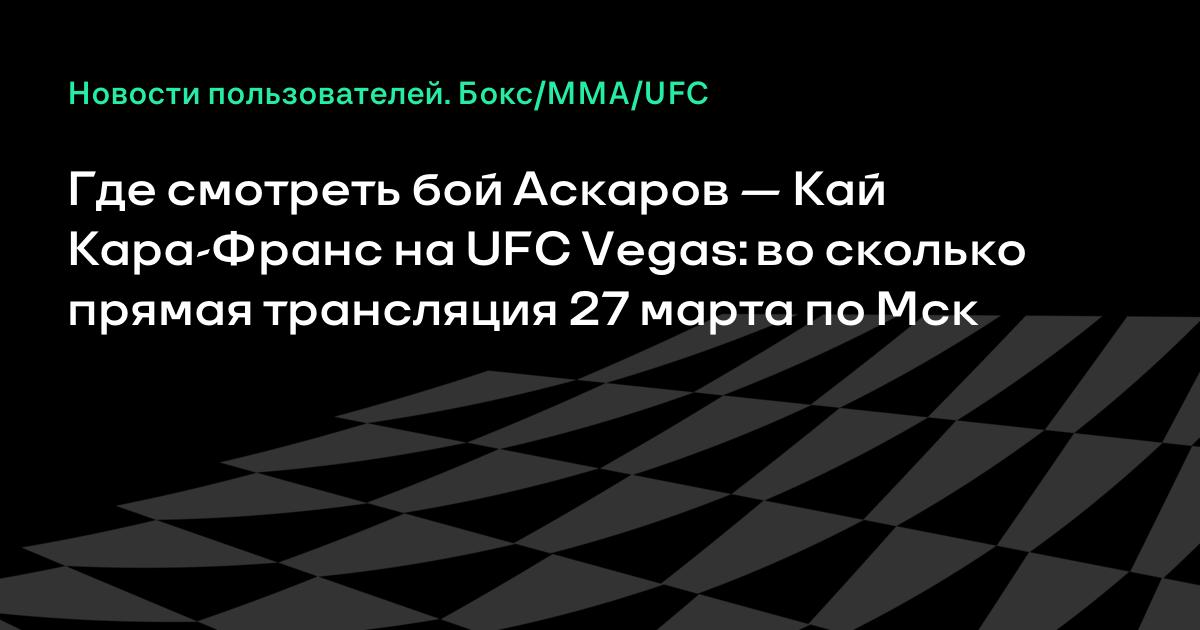 Где смотреть бой Аскаров — Кай Кара-Франс на UFC Vegas: во сколько прямая трансляция 27 марта по Мск