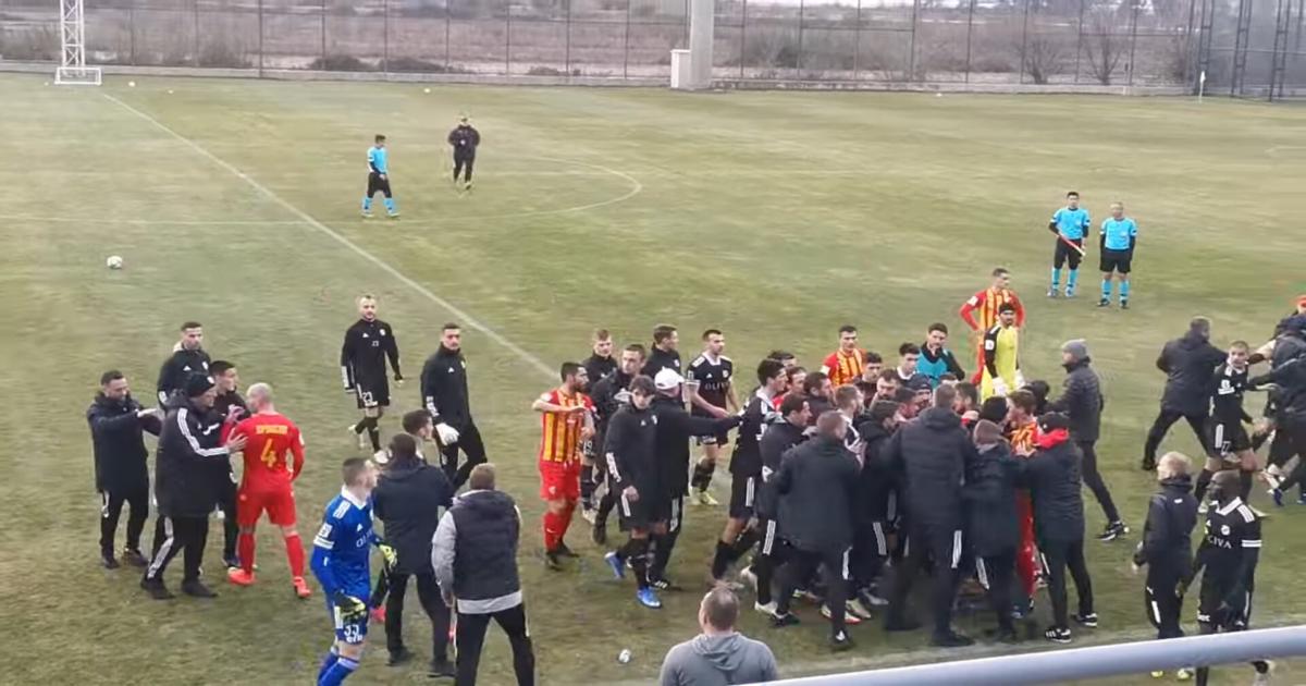 Потасовка случилась в конце первого тайма при счете 0:0. После этого сербская команда не стала продолжать игру и покинула стадион.