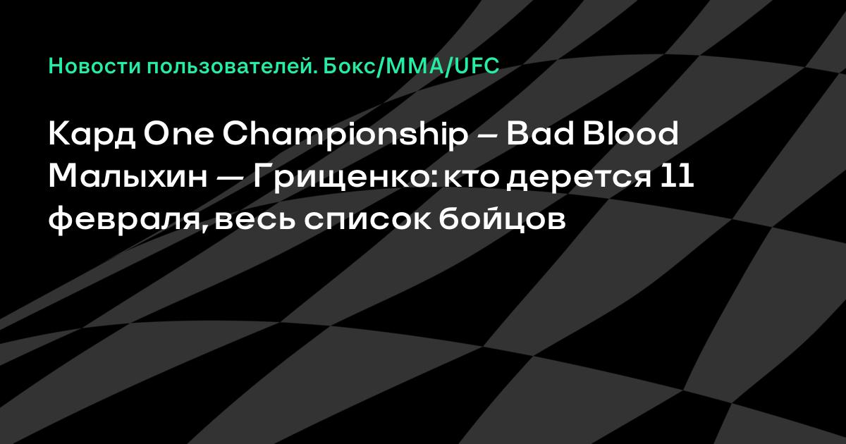 Кард One Championship – Bad Blood Малыхин — Грищенко: кто дерется 11 февраля, весь список бойцов