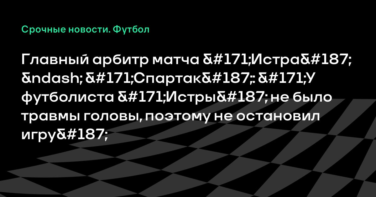 Главный арбитр матча «Истра» – «Спартак»: «У футболиста «Истры» не было травмы головы, поэтому не остановил игру»