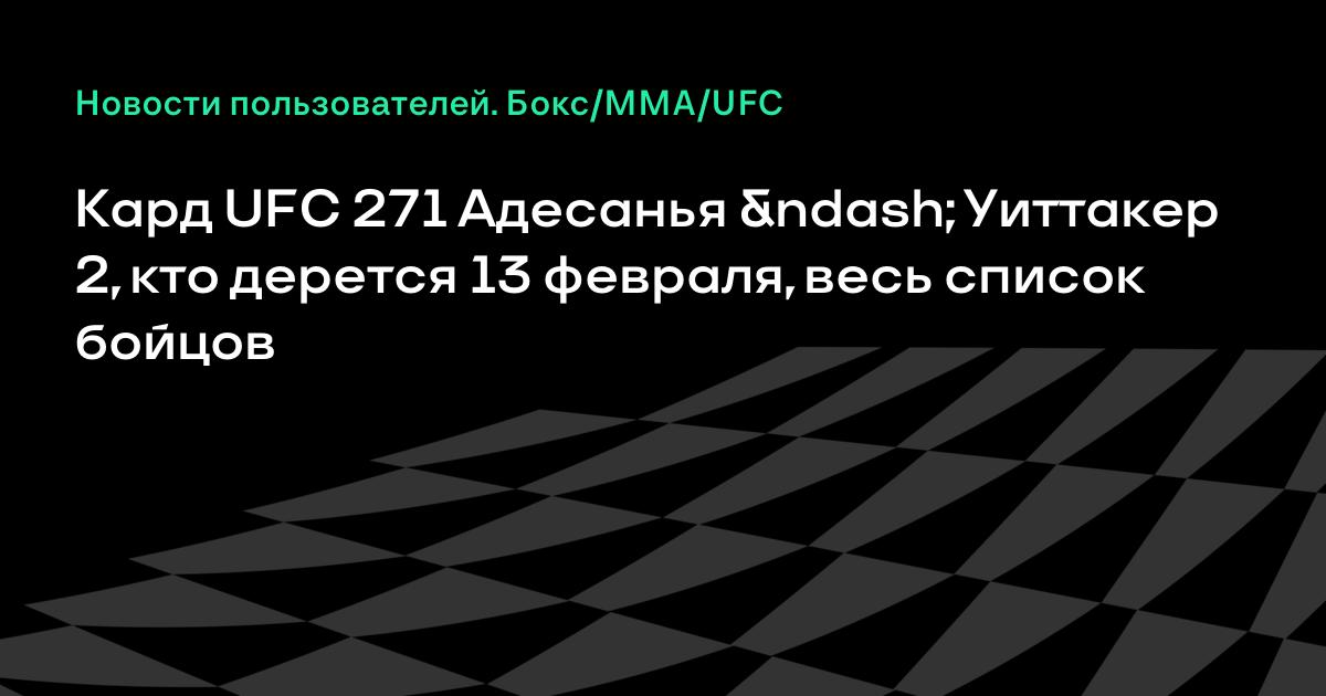 13 февраля пройдет UFC 271, главный бой которого – титульный реванш Исраэля Адесаньи против Роберта Уиттакера.