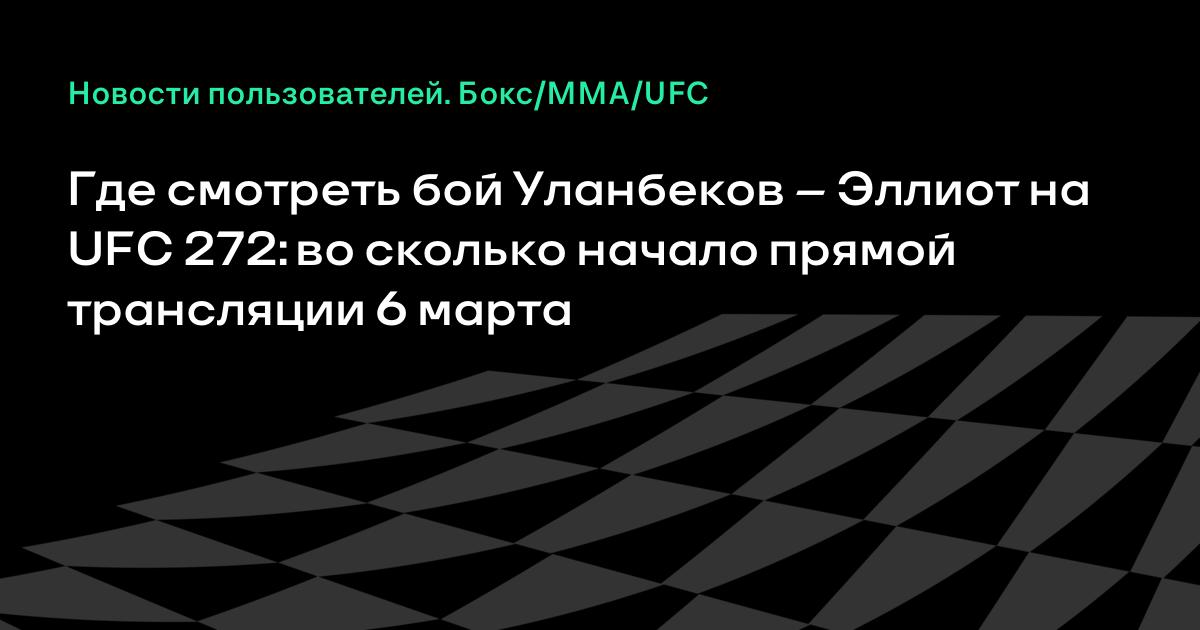 Где смотреть бой Уланбеков – Эллиот на UFC 272: во сколько начало прямой трансляции 6 марта
