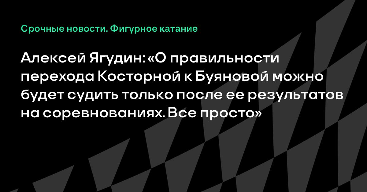 «О правильности перехода Косторной от Тутберидзе к Буяновой можно будет судить только после ее результатов на соревнованиях. Все просто.