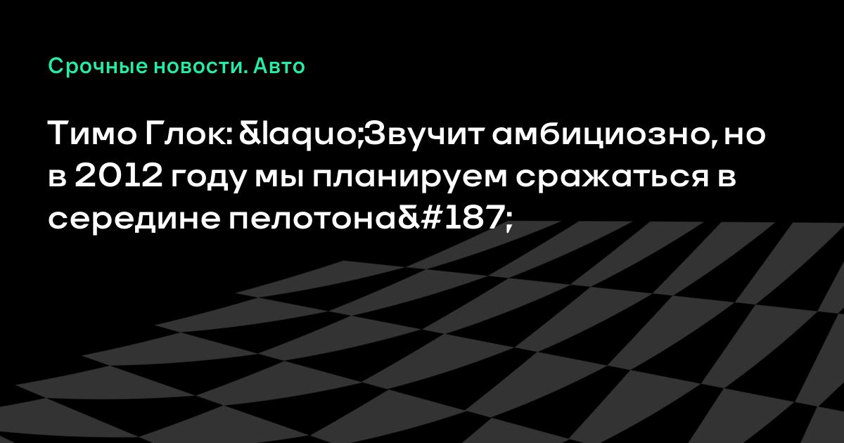 Тимо Глок: «Звучит амбициозно, но в 2012 году мы планируем сражаться в середине пелотона»