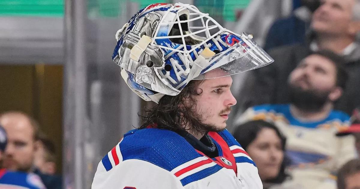 Вратарь «Рейнджерс» пропустил 4 шайбы за на отрезке, составившем 7 минут 10 секунд игрового времени.