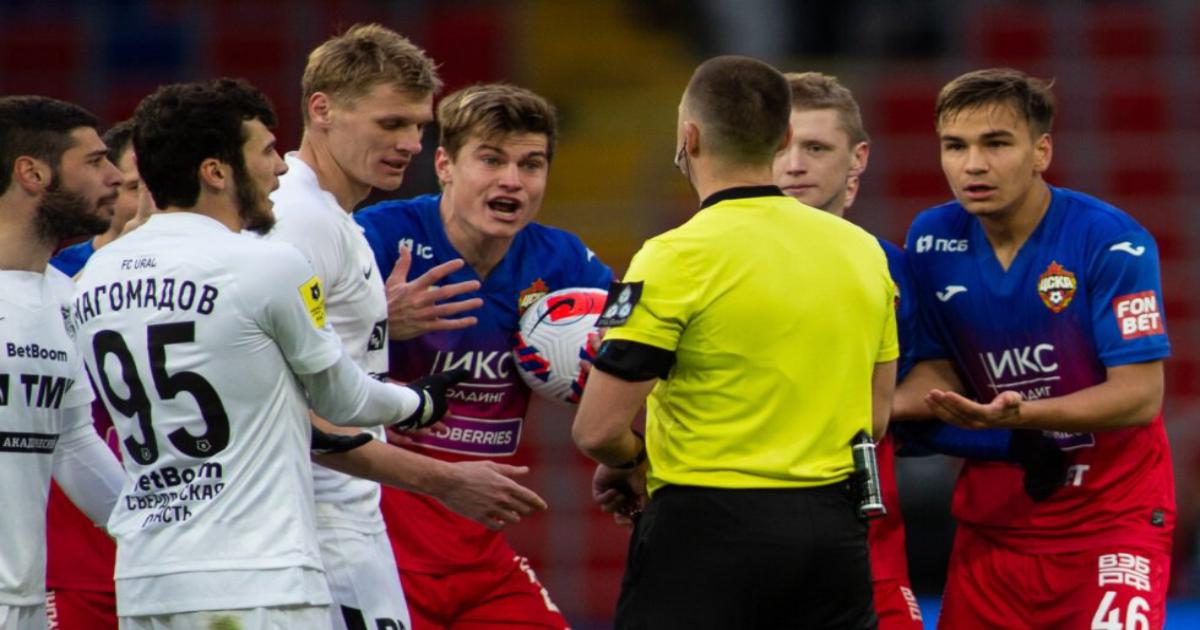 Арбитр Игорь Панин не назначил пенальти в ворота ЦСКА в игре с «Уралом» на пятой компенсированной минуте ко второму тайму.