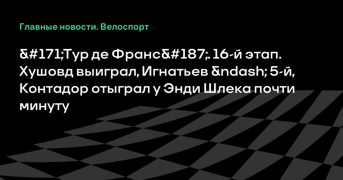 «Тур де Франс». 16-й этап. Хушовд выиграл, Игнатьев – 5-й, Контадор отыграл у Энди Шлека почти минуту