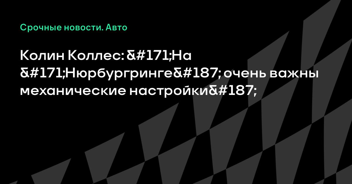 Колин Коллес: «На «Нюрбургринге» очень важны механические настройки»