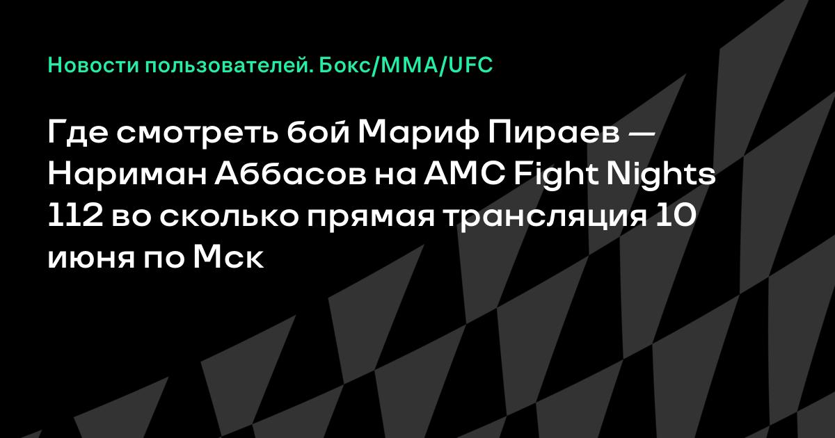 Где смотреть бой Мариф Пираев — Нариман Аббасов на AMC Fight Nights 112 во сколько прямая трансляция 10 июня по Мск