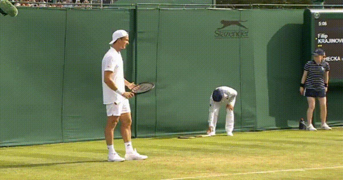 Филип Краинович играет с Иржи Лехечкой в первом круге «Уимблдона».