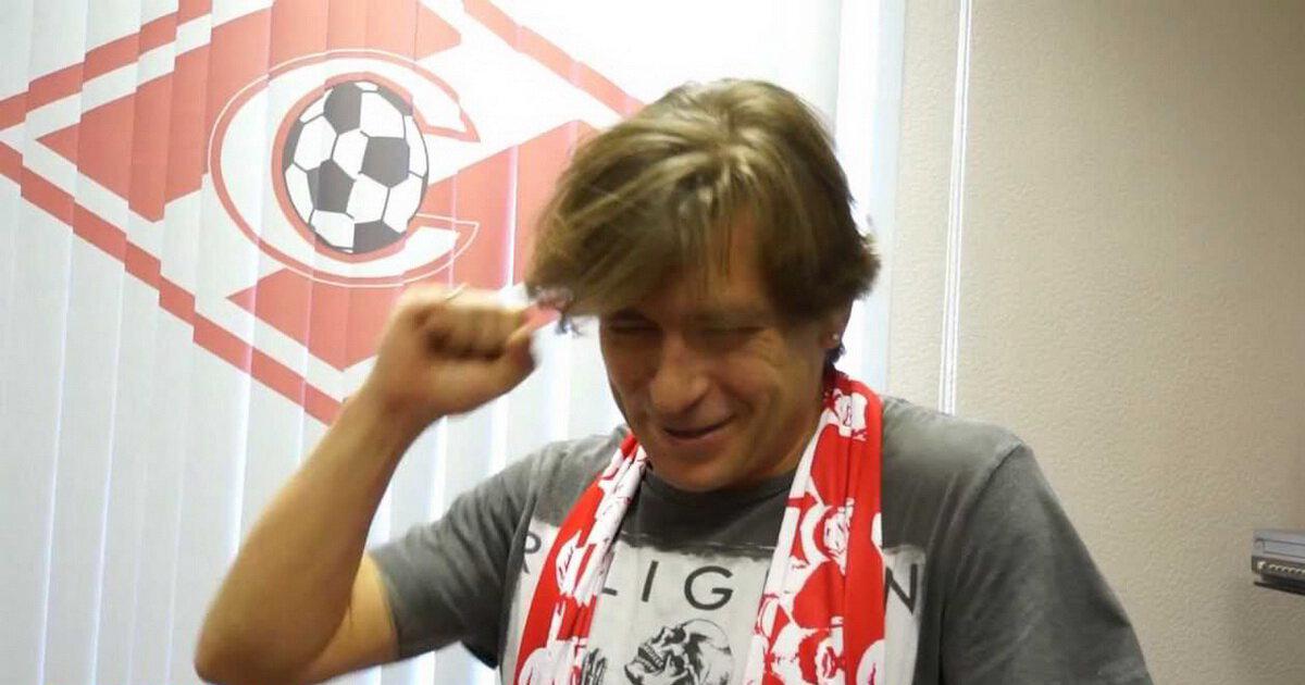 После матча за OLIMPBET Суперкубок России, завершившейся крупной победой питерцев над «Спартаком» (4:0), вокалист группы Лева Би-2 вышел на сцену с шарфом красно-белых на шее.