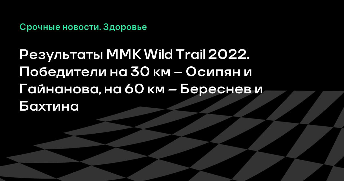 Результаты MMK Wild Trail 2022. Победители на 30 км – Осипян и Гайнанова, на 60 км – Береснев и Бахтина