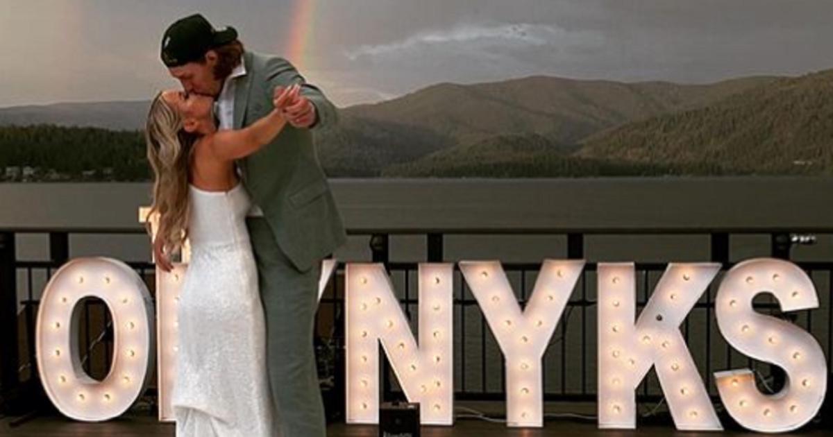 Форвард «Детройта» Келли Олиник предстал в необычном наряде на свою свадьбу.