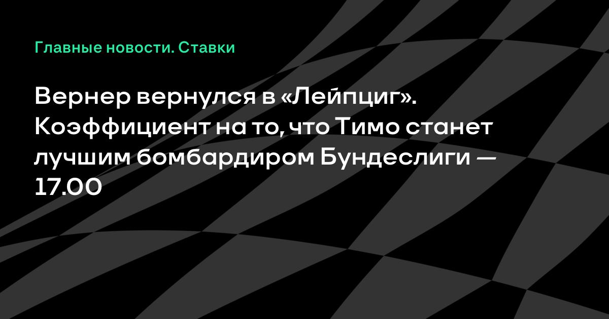Букмекерские конторы подсуетились и оперативно выкатили линии на Вернера в борьбе за звание лучшего бомбардира: «1хСтавка», например, на победу Тимо в гонке снайперов дает коэффициент 15.00 (около 6%), а европейская контора Unibet верит в успех Вернера на родине еще меньше — 17.00 (5%).